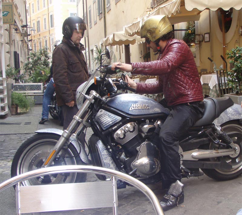 While I was in Italy I accidentally stumbled across the Italian Hells Angels HQ in Rome.I was able to identify them them by the leathers and open face helmets and obviously the Harley Davidsons.