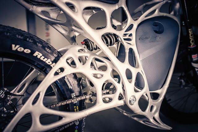 APWORKS see the Light Rider of the future of mobility, strong lightweight, and no carbon emissions. The swiss cheese looking aircraft quality aluminium frame is exceptionally strong, and was created using bionic algorithms. I'm fairly certain they were the same formulas that were used to create the Six Million Dollar Man back in the 70's. Good thing they didn't throw out those worksheets.